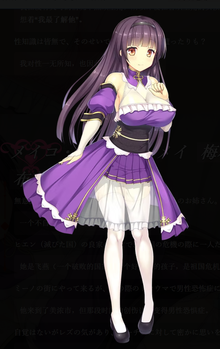 她是ヒエン国(一个衰败的国家)的一个贵族家庭的女儿,也是在祖国陷入危险时唯一逃脱战争的人。